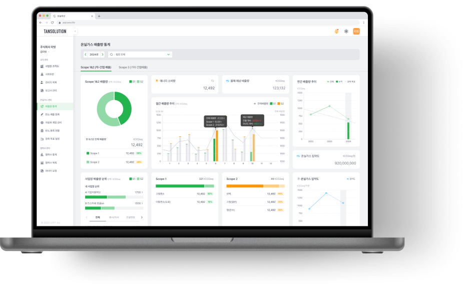 기업에 맞는 최적화된 탄솔루션을 통해 탄소배출량을 가장 편리하게 관리해보세요.