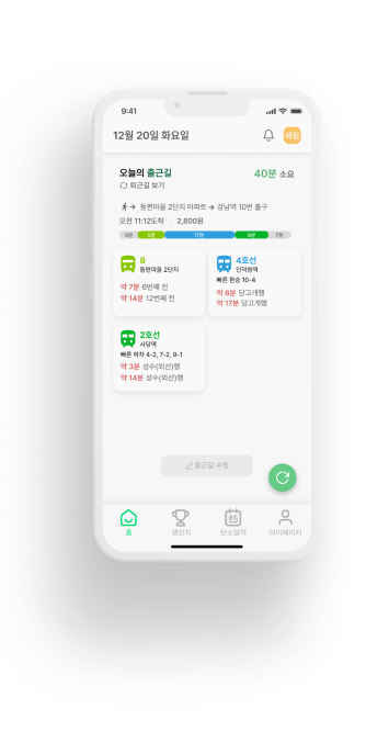 기업내에서만 사용하는 앱이 아닌 출퇴근길 교통정보를 제공하여 사용성을 높였습니다.